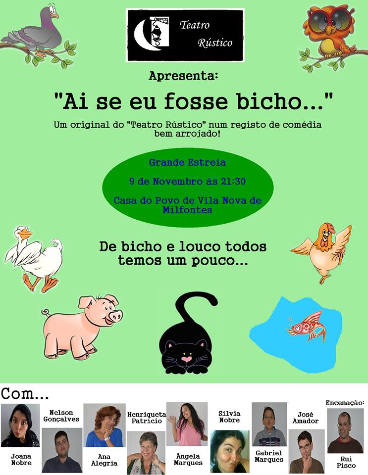 "Ai se eu fosse bicho!" é o nome da mais recente peça do grupo Teatro Rústico.